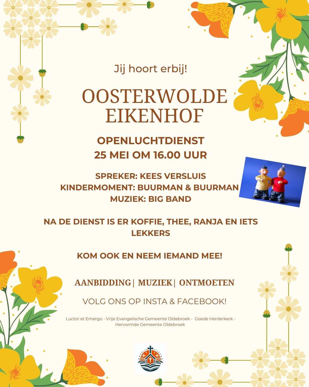 Waar ben je naar opzoek? Alles op een rij Over ons Jongerenwerker Pastoraal ouderenwerker Statuten & Reglement Kerkenraad Historie Voorganger Gemeente Dramateam met Zout en Peper Wandelgroep Kids United Zending Aangepaste dienst Zorgdiaconaat Bijbelstudiegroepen Commissies Een nieuw lied Jeugd Jovo’s Triple F Zondagschool Vakantiebijbelweek Jeugddiensten Creche 16plus groep Israël Actueel Agenda Overig Voor medewerkers Speciale diensten Jeugddiensten Diensten Bidstonden Bijbelstudie Verenigingen Financieel Rekeningnummers I Scipio-app ANBI Contact Secretariaat Communicatie Algemeen Kan je het niet vinden? Bel ons op 0525-630642 ContactNieuws Zondag 25 mei 2025 – openluchtdienst IECO Eikenhorst Oosterwolde 16.00 u. Home › Agenda › Zondag 25 mei 2025 – openluchtdienst IECO Eikenhorst Oosterwolde 16.00 u. Datum Zondag 25 mei 2025 Tijd 16.00 u. Type Middagdienst Locatie Overig Voorganger Spreker Kees Versluis Bijzonderheden Openluchtdienst IECO Eikenhof Oosterwolde