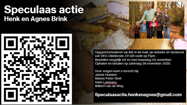 Ook dit jaar organiseert de TFC rond sinterklaas weer een speculaas actie voor Henk en Agnes Brink, ons zendingsechtpaar die, samen met hun vier kinderen, werken bij “Jeugd met een Opdracht” Heidebeek in Heerde.